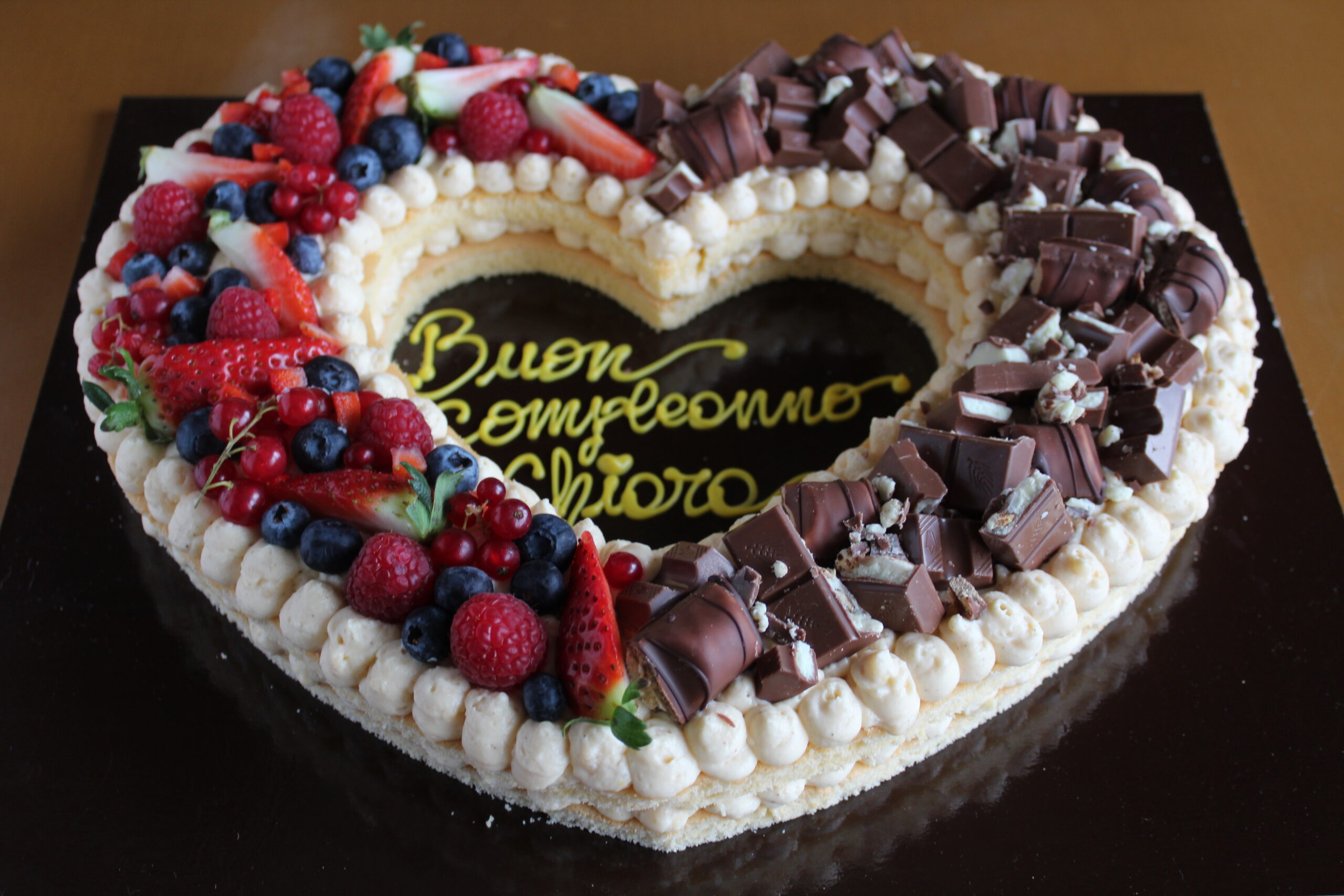 INGREDIENTI: farina, uova, panna, latte, zucchero, fecola di patate, cacao, frutta, amido di mais, amido di riso, cioccolato fondente.