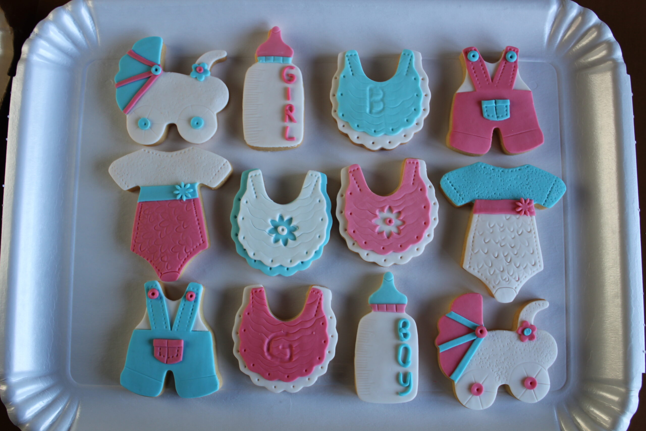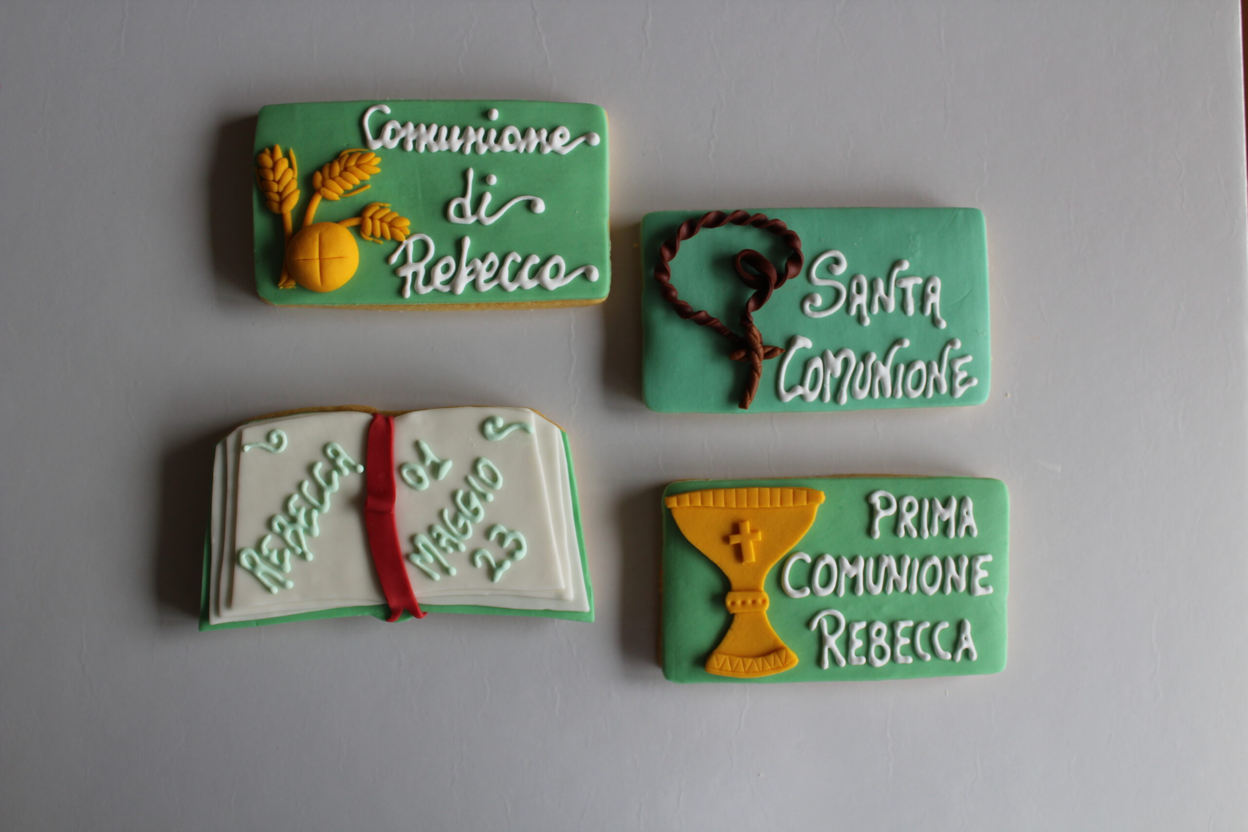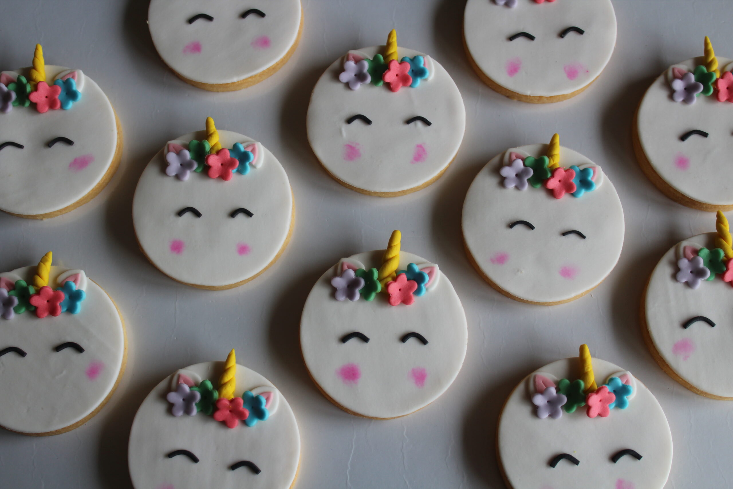 Biscotti di pasta frolla decorati con pasta di zucchero personalizzabili.