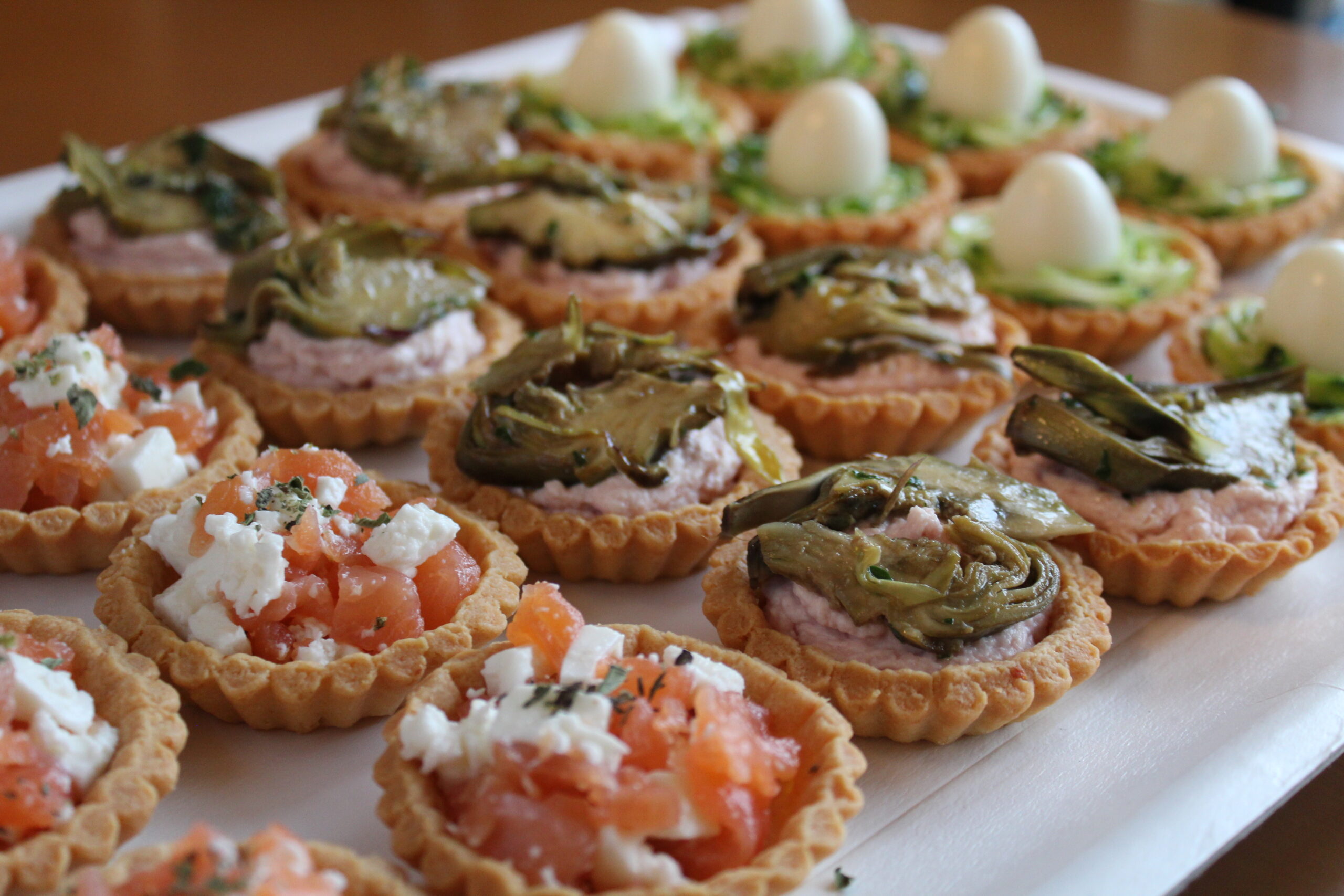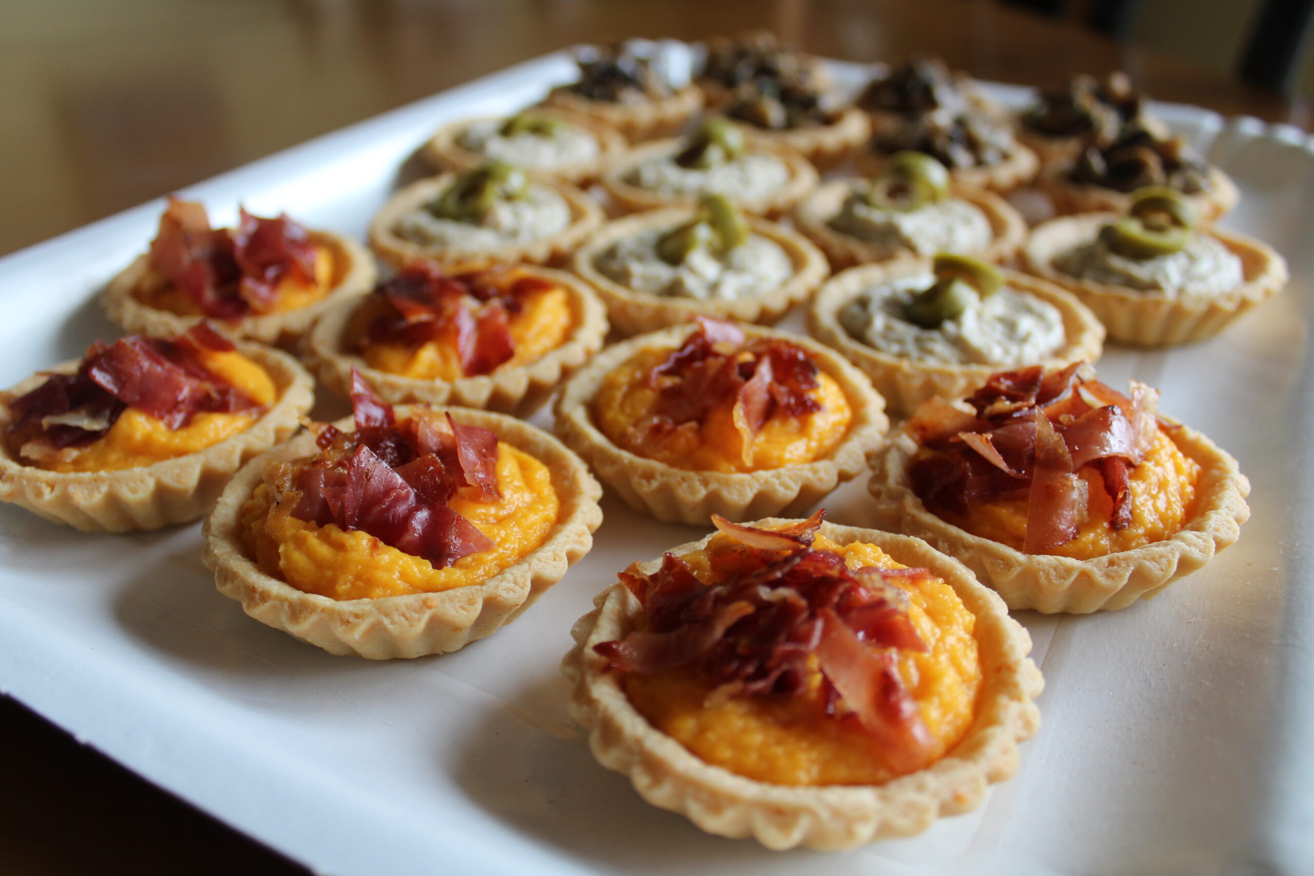 INGREDIENTI: pasta frolla (farina, burro, sale, uova, formaggio grattugiato), mousse salate a vari gusti.
